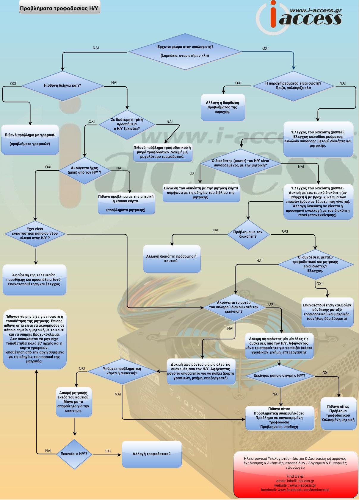 Στο παρακάτω infographic προσπαθούμε να δώσουμε τις πιο πιθανές αιτίες και τρόπους αντιμετώπισης. Σημειώστε οτι μερικές φορές χρειάζεται να έχετε παραπάνω γνώσεις από ενός απλού χρήστη για να ακολουθήσετε όλο το διάγραμμα. Επίσης να πούμε ότι οι λύσεις και οι τρόποι αντιμετώπισης ενός προβλήματος μπορεί να διαφέρουν κατά περίπτωση, αλλά εδώ δίνουμε κάποιες γενικές αρχές.